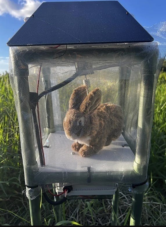 So if you are ever trudging through the Everglades and see a slightly unsettling mechanical bunny sitting alone on a platform and looking appetizing, you are not imagining things. It’s python bait.
